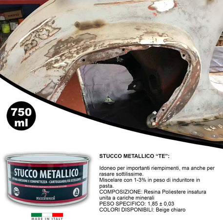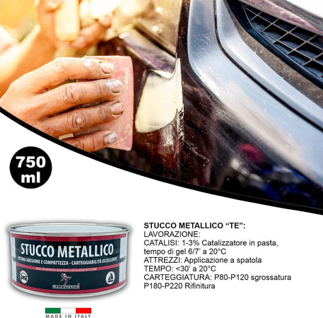 Stucco Metallico Carrozzeria Auto Moto Vespa Bicomponente con Catalizzatore 750 ml Sovraverniciabile