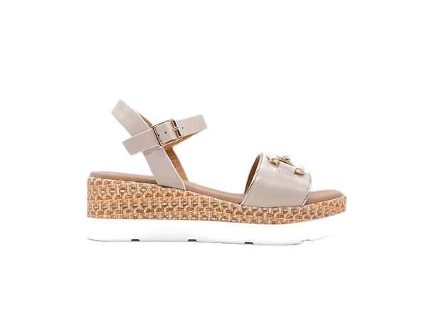 STUDIO MODA Sandali donna con zeppa in pelle avorio