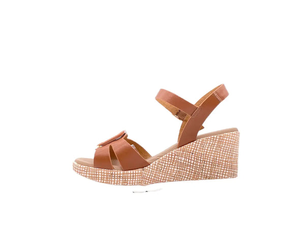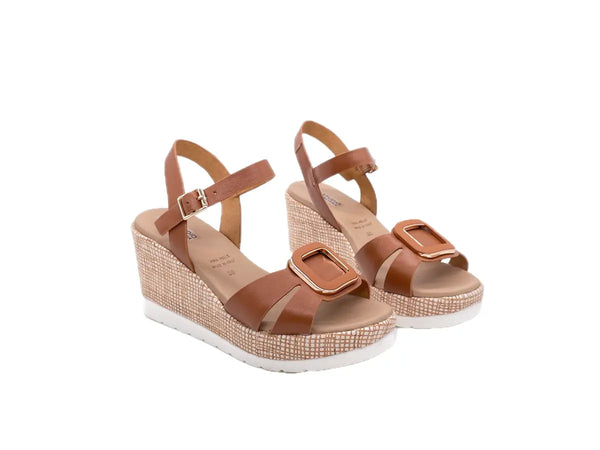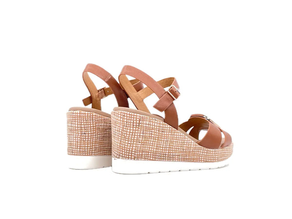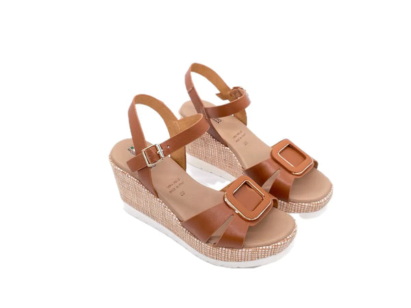 STUDIO MODA Sandali donna in pelle colore cuoio con zeppa
