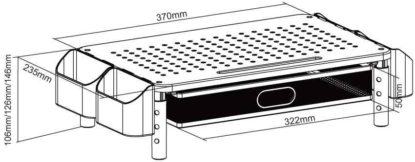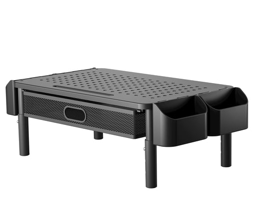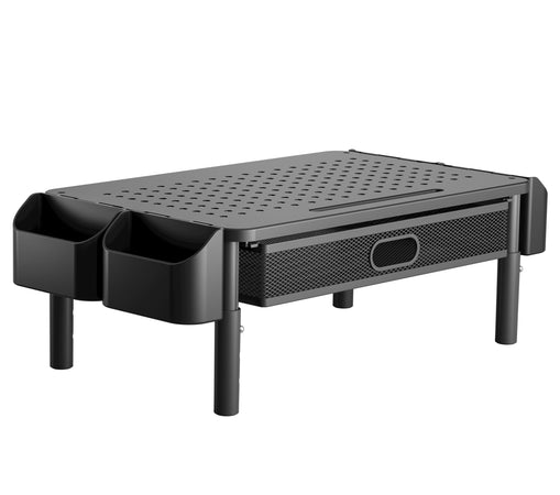 Supporto per Monitor Ergonomico Regolabile a 3 Altezze con Cassetto e Portaoggetti