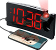 Sveglia digitale curved con Orologio, Allarme e proiezione ora sul soffitto 4 livelli di luminosità e 3 tonalità di allarme - Led Rosso Uscita Usb per ricarica Smartphone