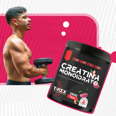 T-rex integratori creatina monoidrata - integratore alimentare per massa muscolare e boost energetico pre workout (thè alla pesca, 250 g)