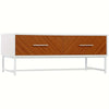 Tavolino da Caffè con 2 Cassetti e Vano Aperto in Legno e Metallo, 100x50x40cm, Bianco e Marrone