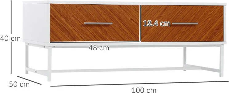 Tavolino caffè 100x50x40 Bianco e Marrone ST4839-251ST4 , soggiorno salotto basso nero bianco marrone grgio design moderno sala moderno alto divano camera legno vetro rotondo