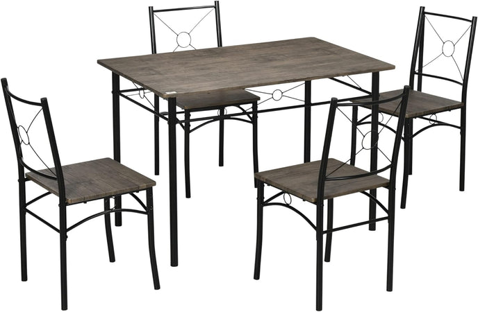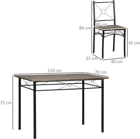 Tavolo Da Pranzo con 4 Sedie, Set 5 Pezzi in MDF e Metallo 110L x 70P x 75Acm