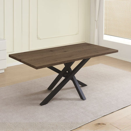Tavolo fisso Ronan con piano in effetto rovere anticato e gambe in metallo nere