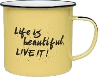 Tazza in metallo giallo life is beautiful