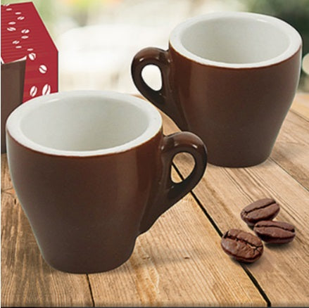 Tazzine in ceramica Bar Set 12pz 90ml con Bordo Grosso 5mm (Marrone) H6xD6,5cm