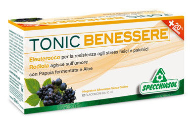 Integratore alimentare formulato in comodi flaconcini monodose, a base di estratti vegetali di eleuterococco, maca, noti per il loro effetto tonico-adattogeno, papaya fermentata, aloe e rodiola per contrastare la stanchezza fisica e mentale.