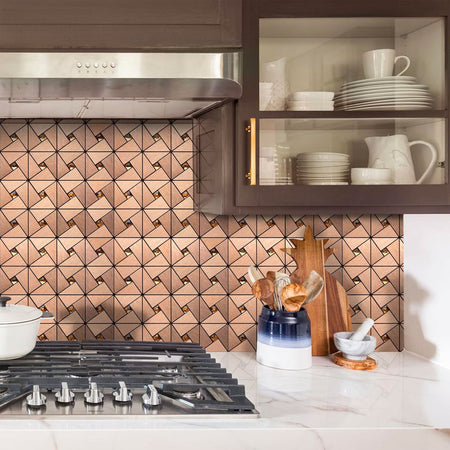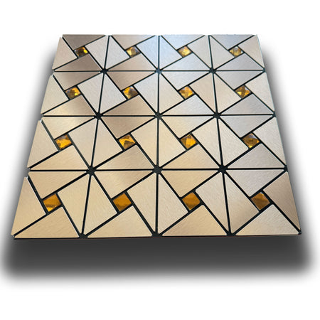 TOP! Piastrella autoadesiva in vero alluminio satinato con inserti in vetro 30x30cm (sp. 3mm) color Rame