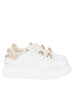 Sneaker in pelle beige linguetta e tallone arriccchita da glitter accessori charms in microstrass Â