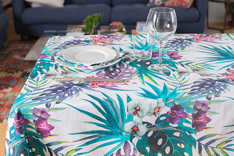 Tovaglia da tavola in cotone stampa digitale dai colori vivi ed intensi lavabile in lavatrice made in Italy MALDIVE