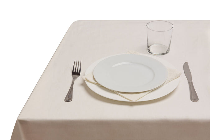 Tovaglia in misto lino con elegante bordo applicato made in italy NATURALE/ROSA PERLA