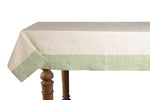 Tovaglia in misto lino con elegante bordo applicato made in italy NATURALE/VERDE MENTA