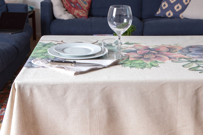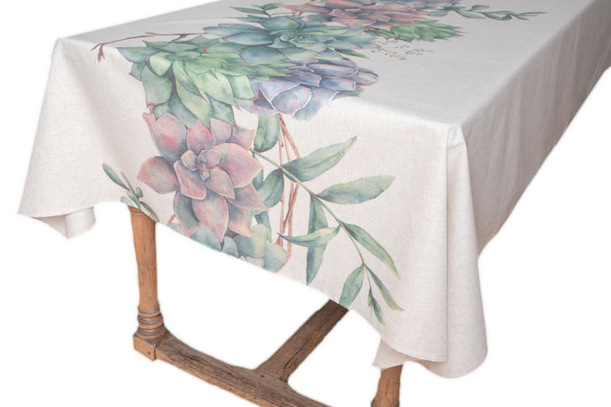 Tovaglia in misto lino stampato morbida resistente elegante made in italy SUCCULENTE