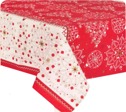 Tovaglia Natalizia Shabby da 24 in Panama con Stampa Natale Capodanno 140x450cm x fine anno 100% Cotone Preziosa