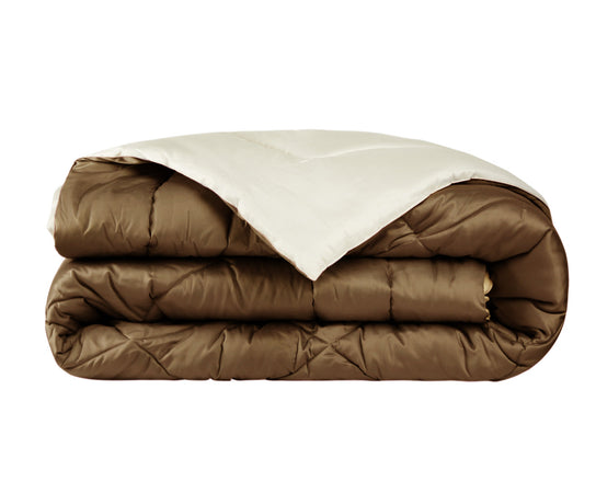 Trapunta matrimoniale Invernale bifaccia-double face in raso di puro cotone Made in Italy Beige/Cacao