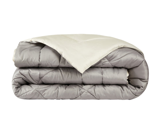 Trapunta matrimoniale Invernale bifaccia-double face in raso di puro cotone Made in Italy Beige/Grigio Fumo