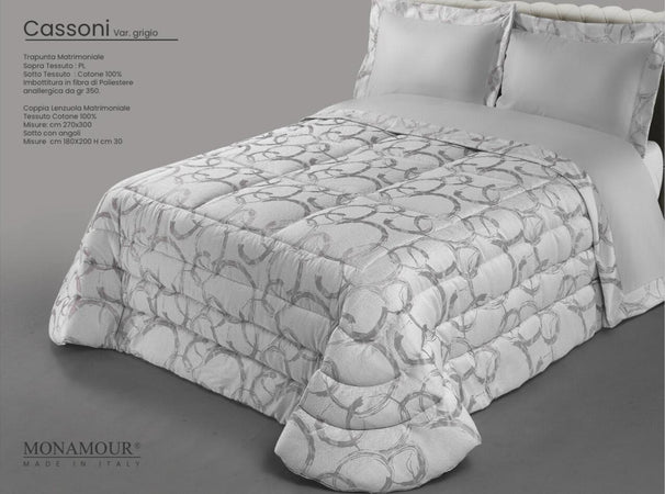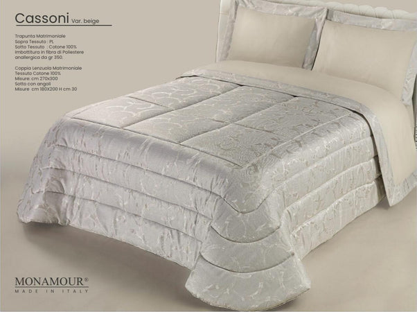Trapunta matrimoniale invernale Mon Amour art. Cassoni Sopra tessuto: PL Sotto tessuto: cotone 100% imbottitura in fibra di poliestere anallergica da gr.350