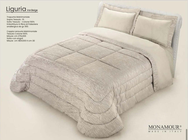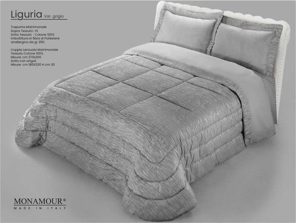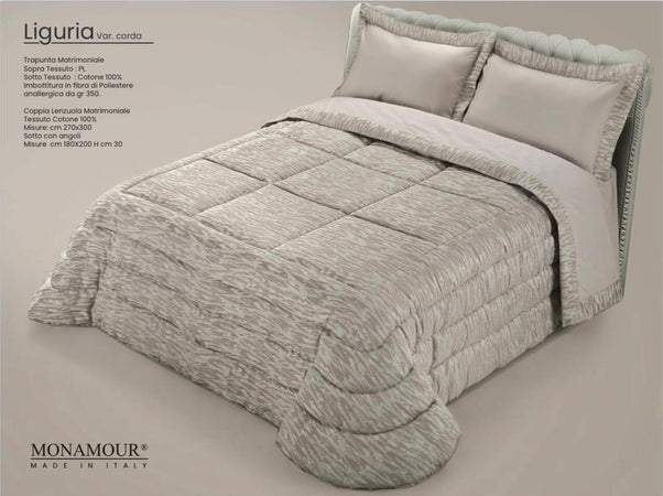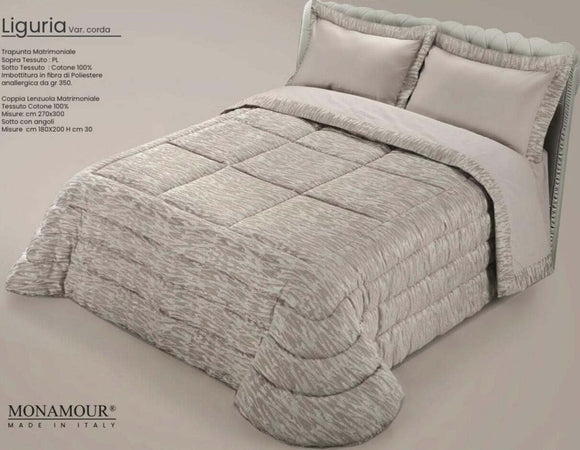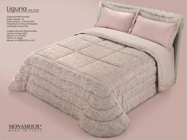 Trapunta matrimoniale invernale Mon Amour art. Liguria Sopra tessuto: PL Sotto tessuto: cotone 100% imbottitura in fibra di poliestere anallergica da gr.350
