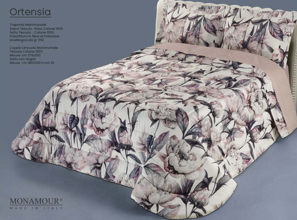 Trapunta matrimoniale invernale Mon Amour art. Ortensia Sopra tessuto: PL Sotto tessuto: cotone 100% imbottitura in fibra di poliestere anallergica da gr.350
