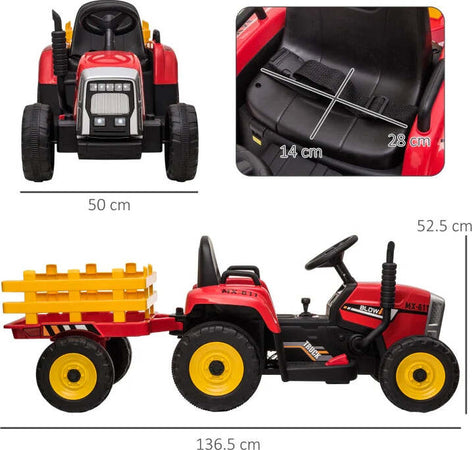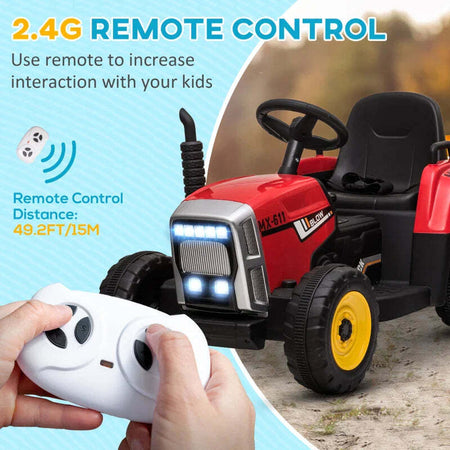 Trattore Elettrico per Bambini 3-6 Anni con Rimorchio Rimovibile, Batteria 12V e Telecomando, Rosso DF5370-281V90RDDF5
