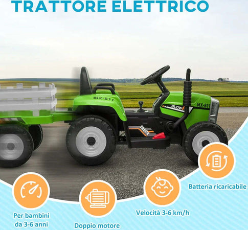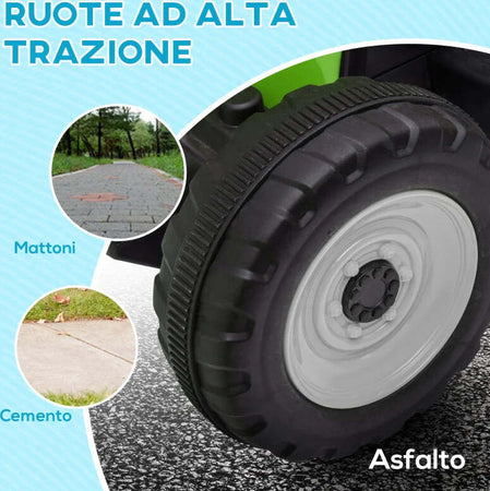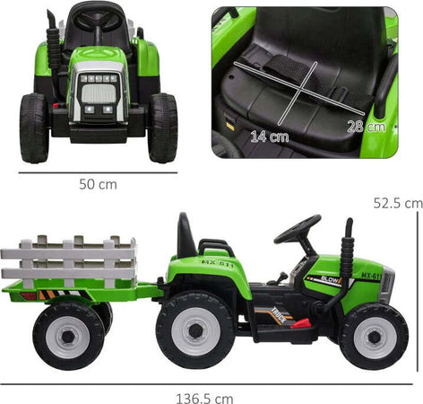 Trattore Elettrico per Bambini 3-6 Anni con Rimorchio Rimovibile, Batteria 12V e Telecomando, Verde RG1370-281V90GNRG1