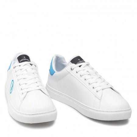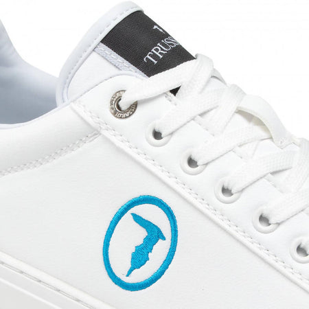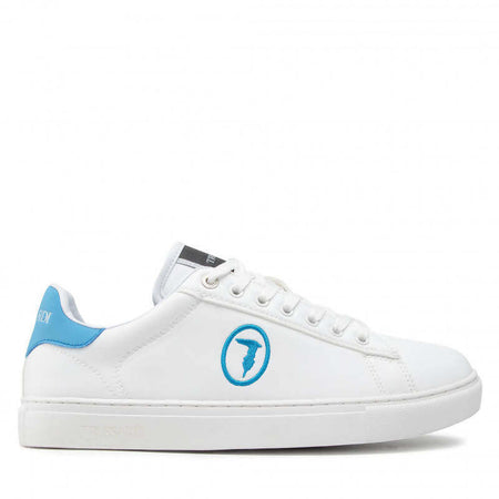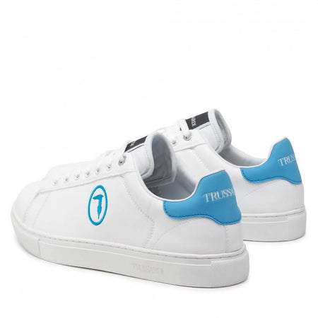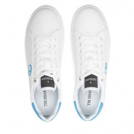 Trussardi Sneakers Bianche Danus Uomo Ecopelle Scarpe 77A00336 Scarpa da Ginnastica Lacci Suola in gomma Bianca e Blue stringata low top coll. Primavera/Estate 2022