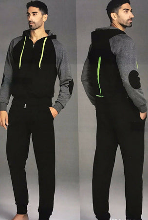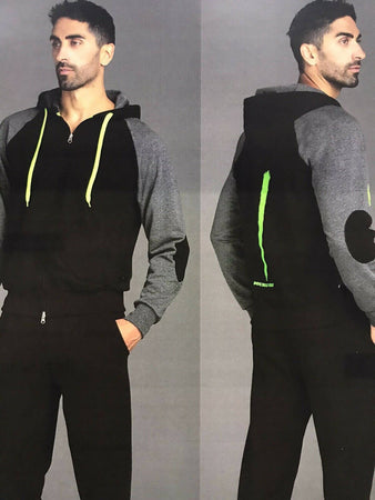 Tuta Uomo Nera e Grigia XL 100% Cotone Felpato Completo Sport per Lui Felpa con Cappuccio + Pantaloni Neri Invernali art. iu 035 Intimami