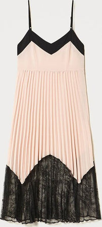 Twin Set Abito Donna Longuette Plissé Con Pizzo Chantilly Estivo Vestito TwinSet Romantico Spalline Sottili Tinta Unita Abitino Lungo Sotto il Ginocchio