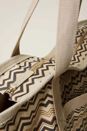 Twinset Borsa Shopper in Canvas Stampato Canapa E Nero Maxi Borsa a Spalla 2 Manici Borsa Logo Frontale, Chiusura Con Zip, Fodera