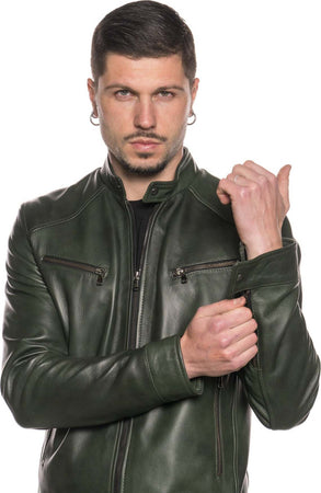 U06 - Giacca Uomo Verde in vera pelle