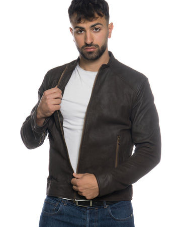 U08 - Giacca Nabuk Effetto Graffiato in vera pelle