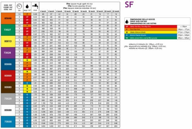 Ugello a ventaglio standard con angolo di spruzzata 110°, colore giallo, montati sulla barra correttamente spaziati e alla giusta distanza dalla superficie da trattare, garantiscono una copertura uniforme. Stampato in Delrin, ad alta stabilità chimica, che conferisce ottime caratteristiche di durata. Adatto per trattamenti con erbicidi, fungicidi ed insetticidi.
