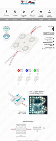 V-tac vt-28358 modulo 4 led 1,44w smd 12v impermeabile ip68 - sku 5131 / 5132 / 5133