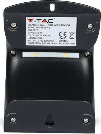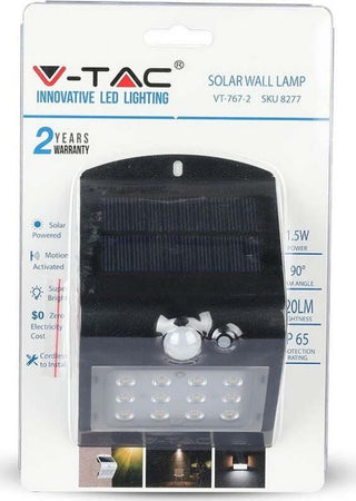 V-tac vt-767-2 lampada nero da muro led 1,5w con pannello solare e sensore - sku 8277-2
