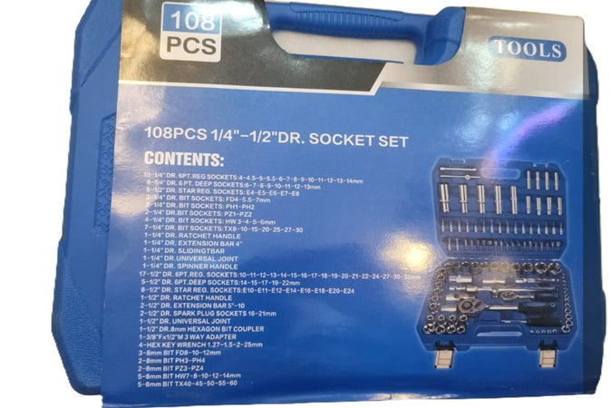 Fantastico kit chiavi a bussola cricchetto 108pz in chrome vanadium ideale per officine, artigiani è per lavori fai da te