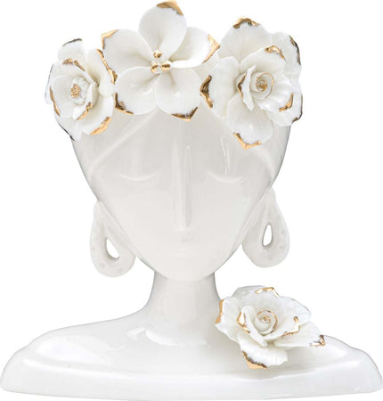 Elegante vaso in porcellana bianca con delicate decorazioni dorate. Il particolare design ispirato ad un volto femminile e le forme morbide donano un tocco di grazia e bellezza.