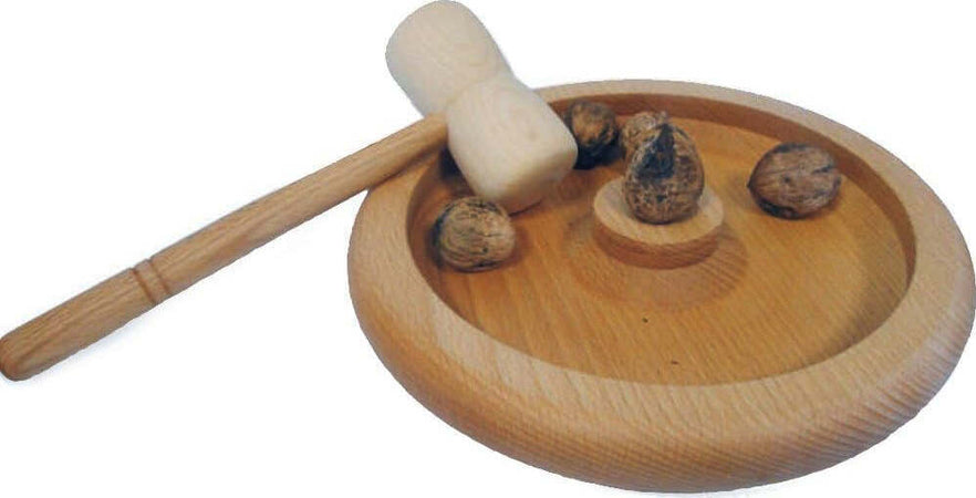 Vassoio Con Mattarello Schiaccia Noci Mandorle Diametro 25 cm In Legno Chiaro