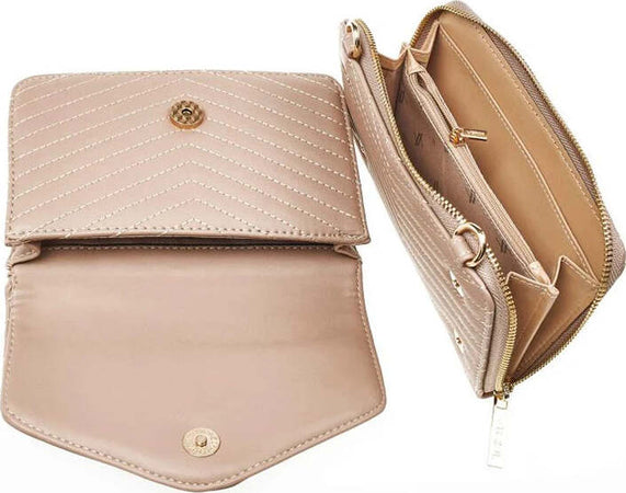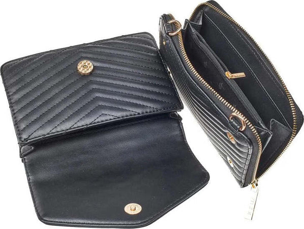 La borsa a tracolla con pattina è versatile ed elegante al tempo stesso. Il suo design smart è composto da due parti unite da bottoni automatici che permettono di utilizzarla sia come borsa che come portafoglio con cerniera. Il tessuto in ecopelle e la lavorazione a righe la rendono perfetta per ogni occasione, dal giorno alla sera.