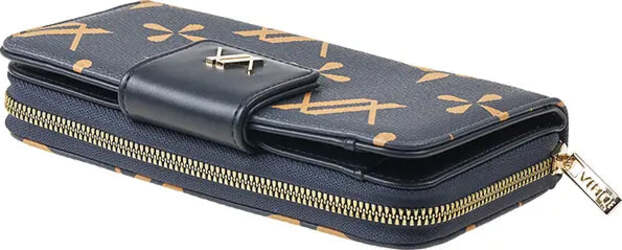 Il portafoglio logo con bottone e zip è un accessorio raffinato e funzionale per la donna moderna. Il look classico della fantasia monogramma viene impreziosito della chiusura a bottone che protegge lo scomparto delle carte. Presenta anche una comoda zip per le monete, per non dover rinunciare a nessun comfort. Perfetto per chi cerca un accessorio dal design contemporaneo e dalla funzionalità ottimale, senza rinunciare allo stile distintivo di Verde Fashion.