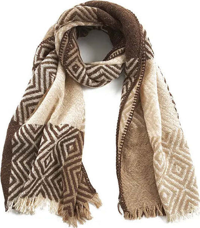 La sciarpa a fantasia a rombi è un accessorio audace e moderno, perfetto per aggiungere un tocco grafico ai look di stagione. Realizzata in un tessuto caldo e avvolgente, questa sciarpa presenta un motivo di rombi che crea un effetto dinamico e sofisticato. Ideale da abbinare sia a capi casual che eleganti, conferisce carattere e originalità a qualsiasi outfit invernale. Un accessorio versatile che combina comfort e stile, pensato per chi ama distinguersi con dettagli unici.