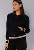 Felpa con zip in morbida viscosa, caratterizzata da manica, polsino e fondo a costine e riga a contrasto. Un capo basic e versatile, pensato per look pratici e confortevoli.
