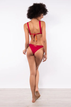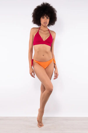 Brasiliana annodata realizzata in un tessuto resistente al cloro e ad asciugatura rapida, presenta un design monocolor e double face.