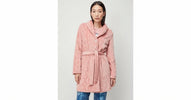 Vestaglia in tessuto felpato (Coral), chiusura con bottoni e tasche laterali.