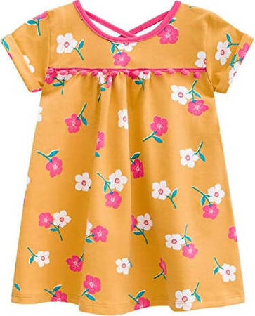 Vestito Estivo Bimba Mezze Maniche Vestitino Giallo Rosa a Fiori Estate Abito Bambina Girocollo Morbido 95% Cotone Abitino Corto Kyly