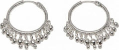Orecchini cerchietto con sfere pendenti effetto cascata. Diametro 2,7 cm circa. Chiusura a scomparsa. Placcato in argento. Nickel tested. Gioielli fatti a mano, unici e artigianali, perfetti per tutti i tuoi look o come idea regalo.