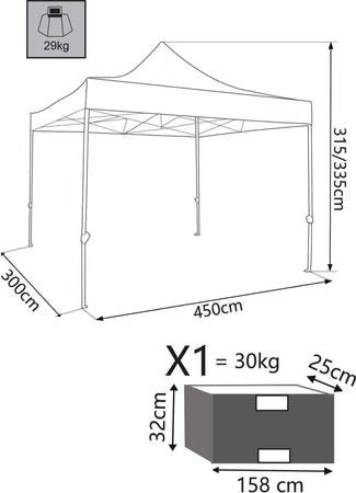 VIRIDIS - gazebo pieghevole e richiudibile completo di sacca protettiva 3x4,5 in alluminio Bianco Milani Home