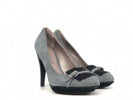 Decollt in camnoscio color catrame con accessorio nero sulla puòa. Tomaia molto morbida in camoscio e fodera in pelle.Tacco 11