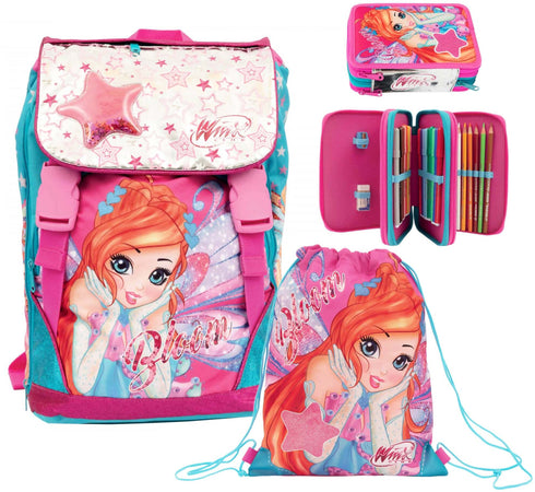 Giochi Preziosi Set Scuola Winx Zaino Organizzato Estensibile Astuccio e Sacca Kit Scuola WN9C5000 Rosa Brillantini Multi Colore Giochi Preziosi